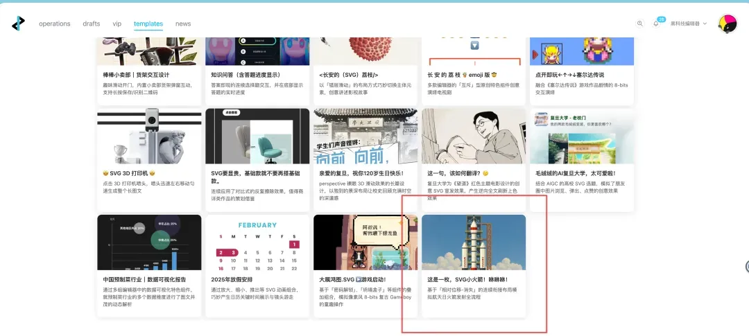 用 SVG 讲述中国航天梦!4 月 24 日是中国航天日,今年的主题为“海上生明月,九天揽星河”。从嫦娥奔月的古老传说,到如今神舟逐梦苍穹、天问探秘火星,中国航天人以无畏的勇气和卓越的智慧,一次次叩开深空的大门。祝愿祖国航天事业如璀璨星辰,在浩瀚宇宙中不断闪耀!图文交互|E2.COOL SVG 编辑器 视觉设计|JZ Creative Studio AI 辅助|即梦、ChatGPT-4o 等