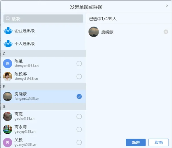 3、点击联系人窗口,支持一键发起单聊/群聊。