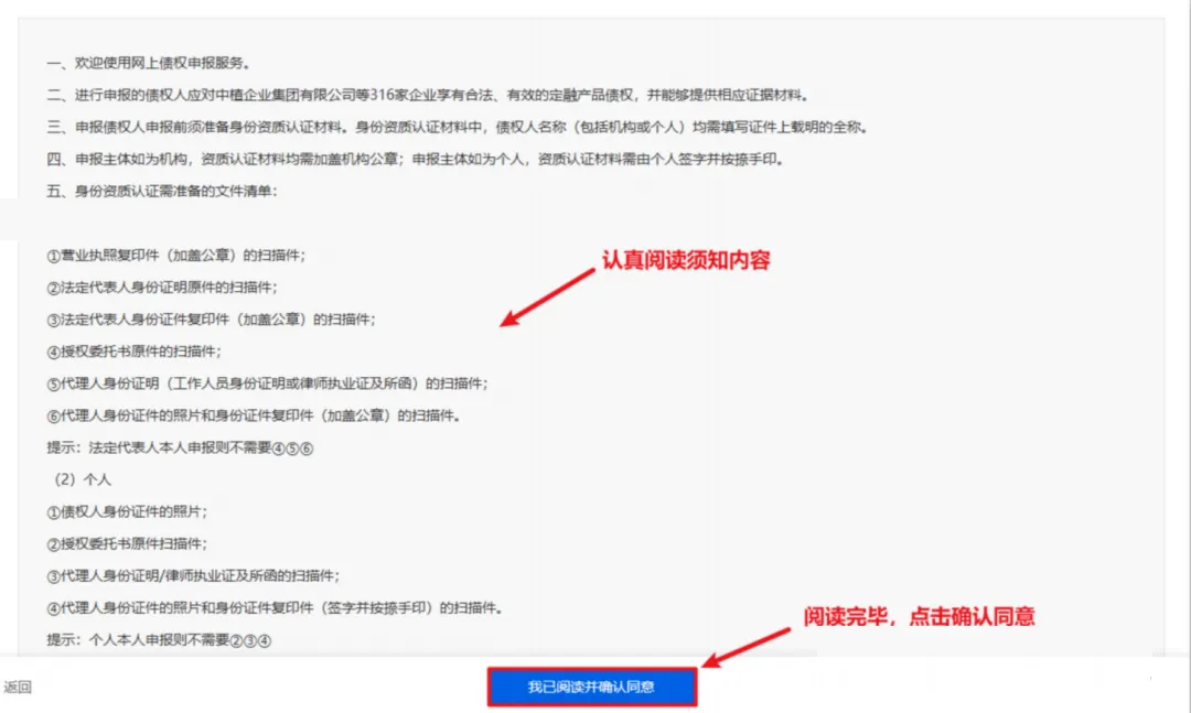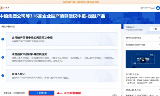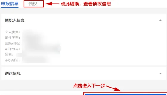 如您此前已经申报过部分定融产品债权,但仍有其它定融产品债权尚未申报的,则请点击【查看记录,补充提交债权】,补充申报定融产品债权即可,无须重新填写“债权人信息”。