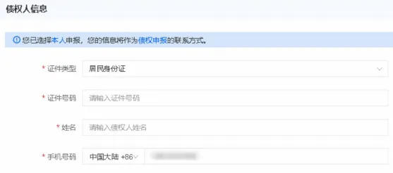 (1)个人(自然人)债权人为本人申报,需登记以下信息。