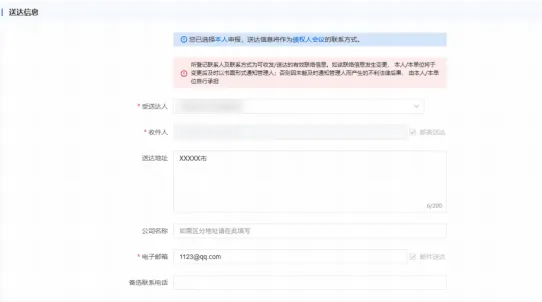 请选择受送达人(债权人本人或代理人)并填写送达地址和电子邮箱。完