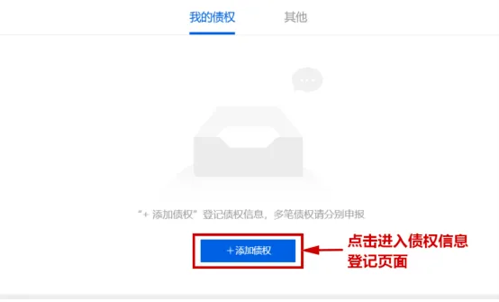若您的债权信息待修改,【债权】按钮后会出现红色方框。