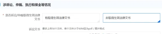 4 填写涉诉讼、仲裁、执行和保全等情况