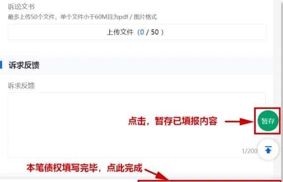 待本笔债权填写完毕后,可点击【提交/保存】完成登记。如下图所示。