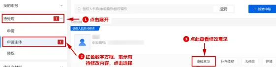 若您的申请主体信息待修改,【申请主体】按钮后会出现红色方框。