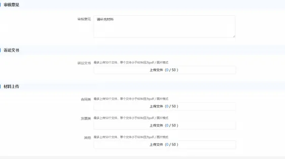 请按要求在对应处上传补充材料,并点击【提交】完成操作。