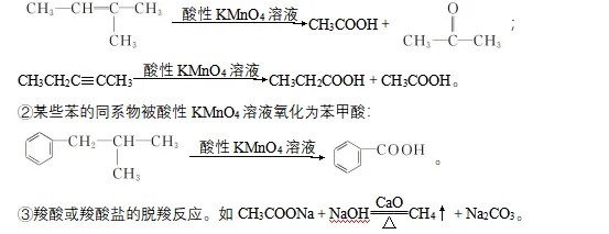 ①不饱和烃在酸性高锰酸钾溶液的作用下不饱和键发生断裂: