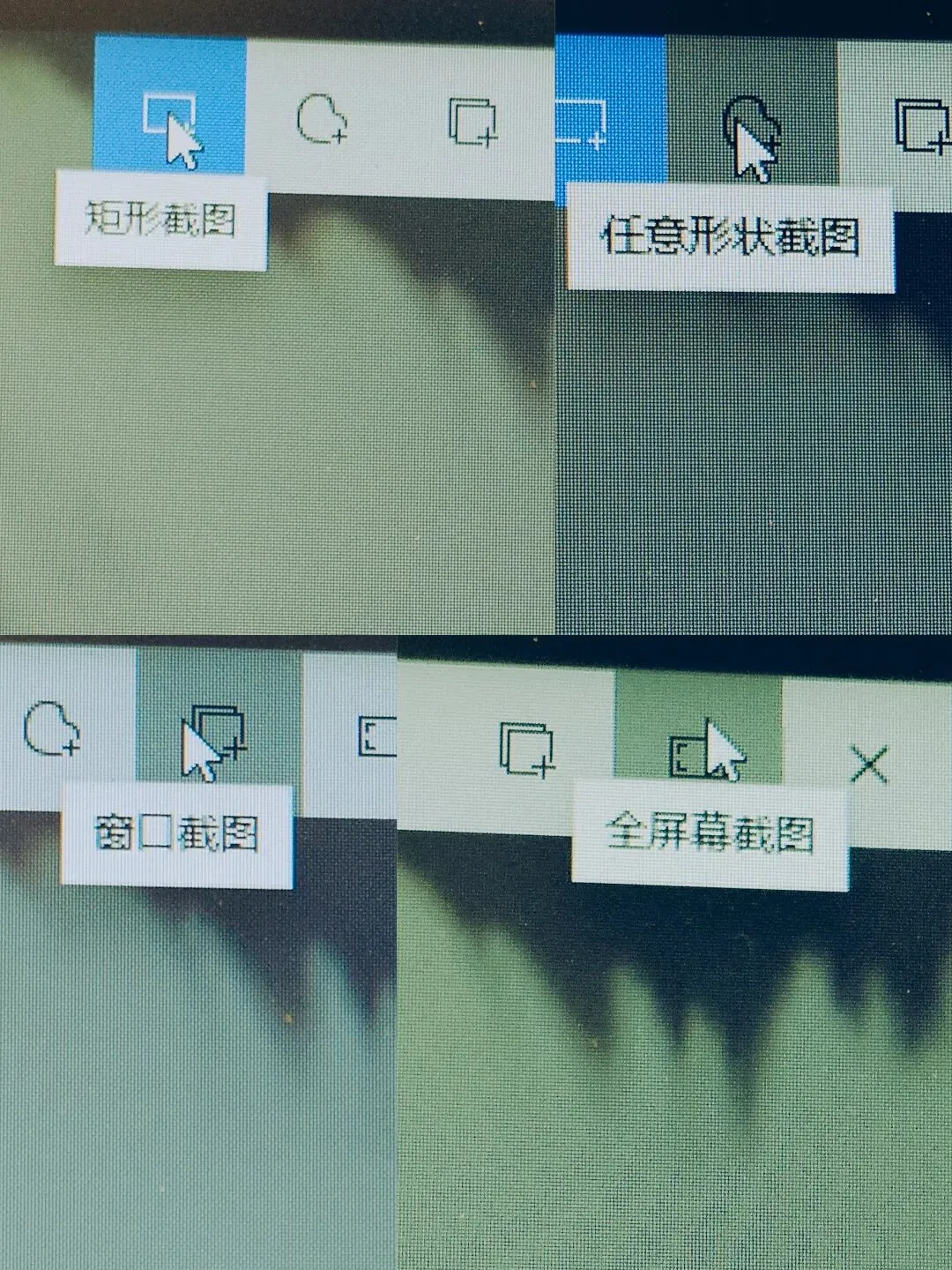 屏幕变暗后,可选不同类型的截图(矩形截图、任意形状截图、窗口截图、全屏幕截图):