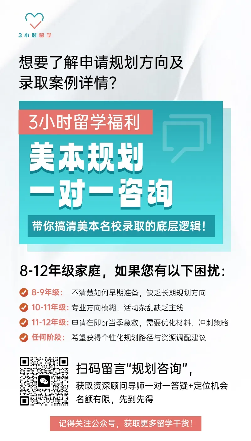 如果你对美本申请/多国联申文书写作、活动规划、面试指导等方面有需要,也可扫下方二维码一对一咨询!