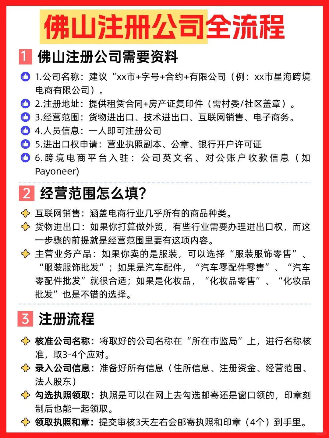1.公司名称:建议“xx市+字号+合约+有限公司(例:xx市星海跨境电商有限公司)。