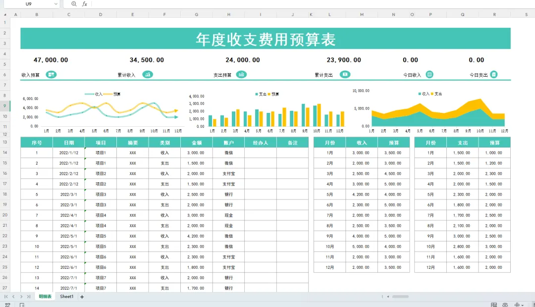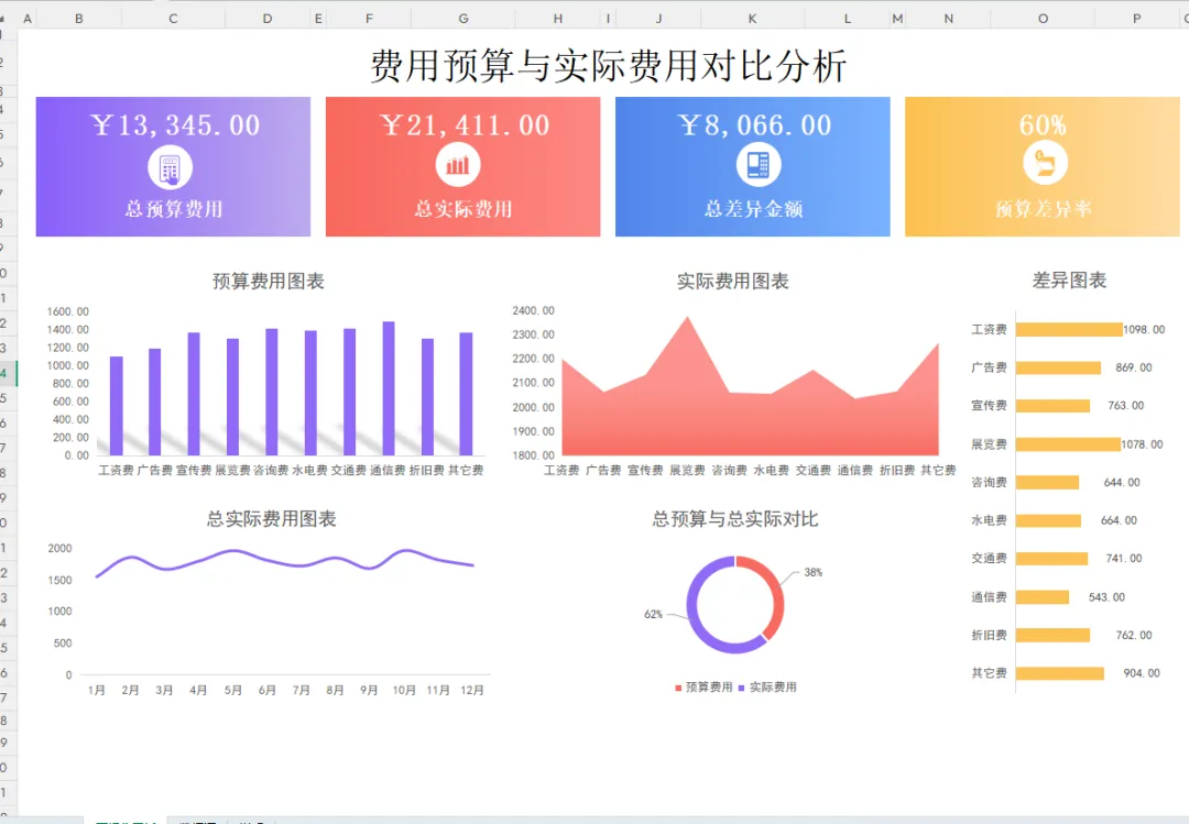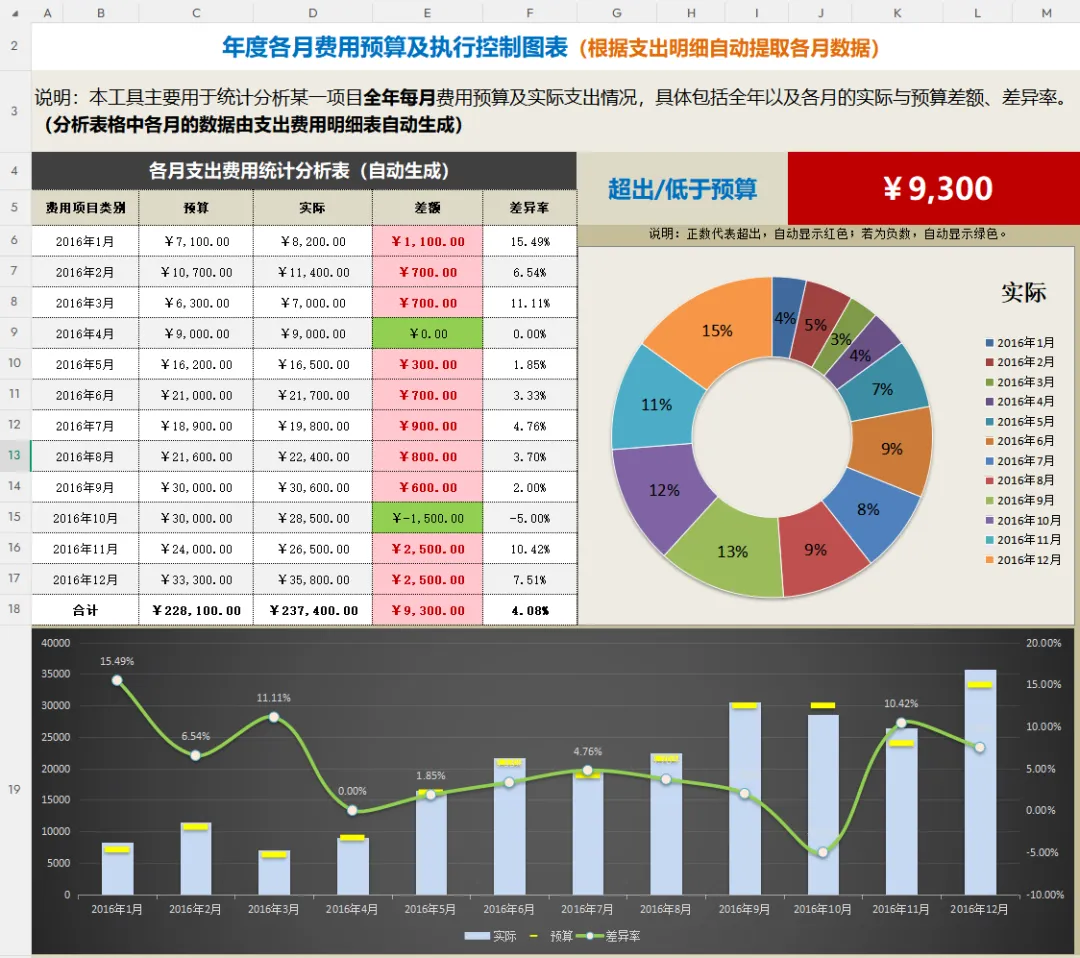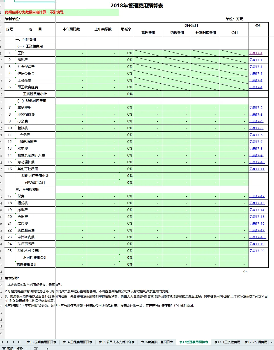 全自动Excel财务预算表格模板,带财务预算管理系统,财务可编辑修改套用!