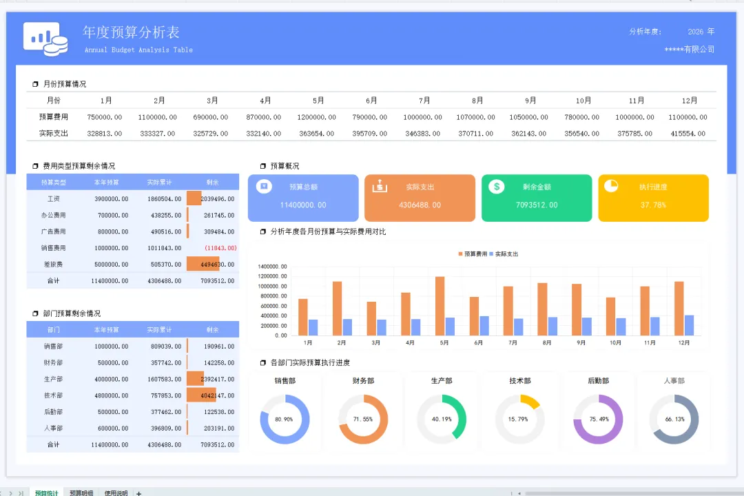 日常财务数据分析时,经营预算分析是很关键的。因此,今天小南带来了这套常用的全自动财务预算表格模板与财务预算管理系统,财务人员做预算分析工作时,直接编辑修改套用即可。还带有主要的2026年度企业主要经营指标汇总分析,财务人员有兴趣的,可以看看。