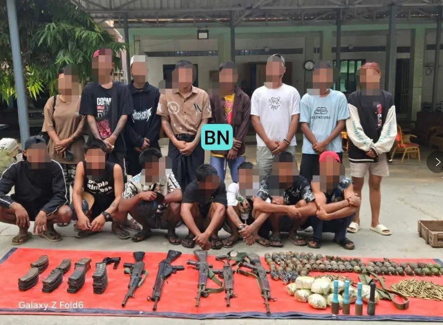 2026年4月19日实皆讯。据缅甸官媒报道,实皆省实皆镇区敏滚区(စစ်ကိုင်းမင်းကွန်း)以指战员亨特佐@焦克(ဟိန်းထက်ဇော်(ခ)ကျောက်ခဲ)为首的15名PDF(男13、女2),4月18日向当局集体投诚,还交了不少武器弹药。