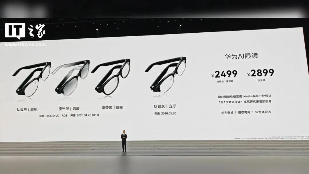 ✅ 背景简述:4月20日,华为发布AI眼镜「何刚同款」,售价2499元/2899元,主打AI交互与时尚佩戴。