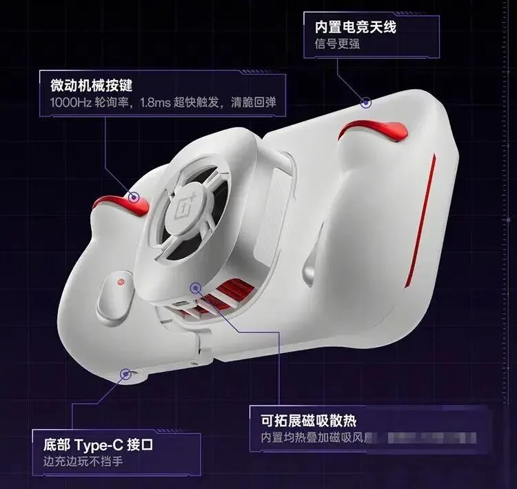 机型定位:主打“掌机化”电竞体验一加Ace系列的定位向来清晰,就是给年轻人的高性能电竞机。这次至尊版直接喊出“掌机化”口号,意味着它的设计逻辑不再单纯追求轻薄,而是向外设联动、操控极限靠拢。这不禁让人想起2019年荣耀V30配合北通手柄的经典方案,时隔五年,一加这套组合拳似乎想把移动端的竞技门槛再拉高一截。外观设计:外设与手机的“深度绑定” 这次的“枪神游戏手柄”是核心卖点。它采用人体工学设计,手感更像传统掌机。它配备了双肩键+双背键,支持“触控+按键”联动,也就是左手摇杆右手点屏幕的操作流。手柄内部集成物理微动机械按键,支持1000Hz轮询率,触发延迟压到了1.8ms。此外,右侧底部留有Type-C接口,实现边充边玩,而且这套手柄还支持磁吸散热风扇加装,看来是铁了心要解决手机散热和电量焦虑的问题。
