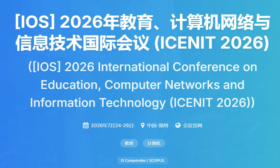 [IOS] 2026 年教育、计算机网络与信息技术国际会议(ICENIT 2026)将于 2026 年 7 月 24-26 日在中国河南省郑州市举办。