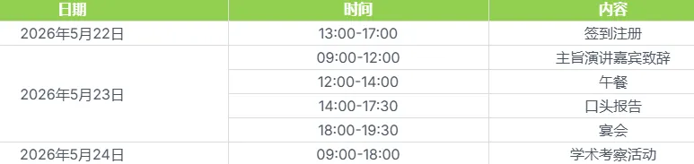 [IOS] 2026年网络安全、通信技术与计算机科学会议 (ACCTCS 2026) 将于2026年5月22-24日在辽宁沈阳举办。以下有关日程安排的信息供您参考: