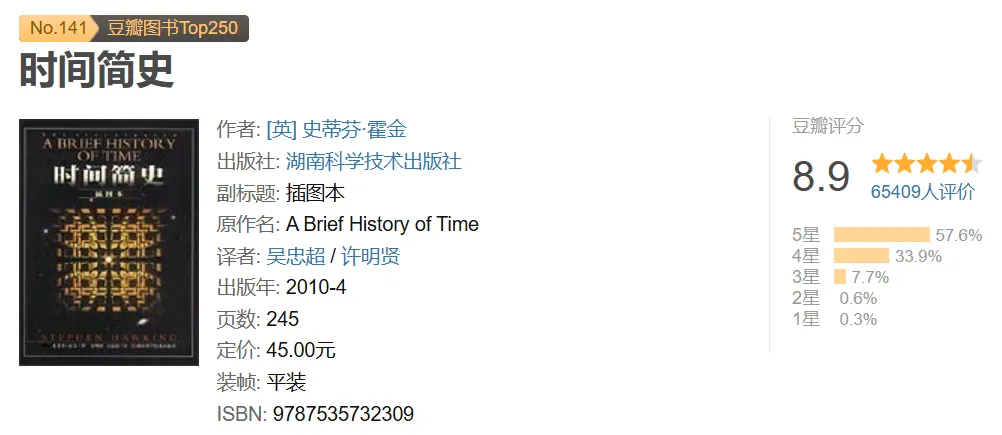 《时间简史》pdf+epub+mobi+azw3电子书下载
