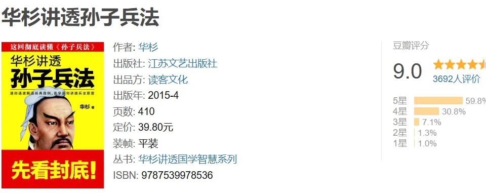 《华杉讲透孙子兵法》pdf+epub+mobi+azw3电子书下载《华杉讲透孙子兵法》电子版下载链接,点击文章末尾左下方"阅读原文"自动跳转。代找电子书加微:ajin6666ajin,加微备注领取电子资料可免费领取20T电子资料合集(古籍/电子书/小说/游戏/软件工具/电影/电视剧/动漫/PPT素材/教辅资料/烹饪教程/各类学习文档等电子资源)。特别提醒:电子资料仅供个人学习使用,链接随时失效,请及时保存到个人网盘!