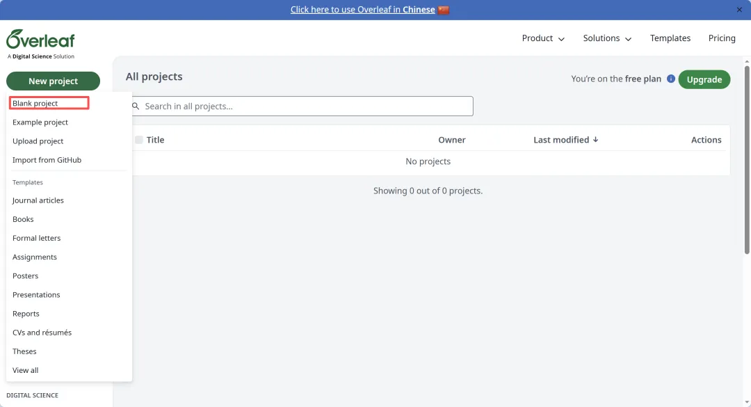 1.打开overleaf,新建blank project,命名“统计调查协会简介”