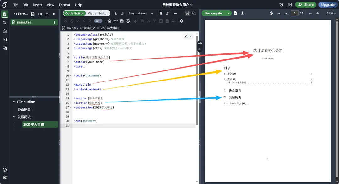 接下来我们将探索Overleaf的更多功能。