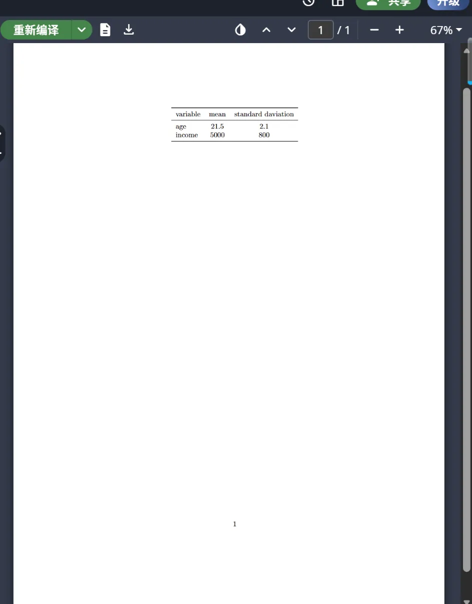 输入完成后点击重新编译,在右侧预览区看到精美的三线表后,直接下载 PDF 就好啦 !