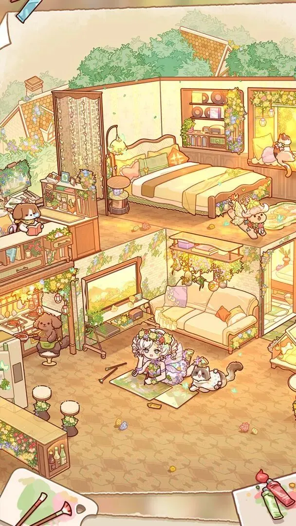 第三款是治愈感天花板《我的休闲时光》,8.9 的超高评分真的实至名归。手绘风的竖屏模拟经营,你可以在专属小屋里装修布置、撸猫种花、网购囤货,完全没有 KPI 约束,想开门就开门,想躺平就躺平。每天上线十分钟,打理打理小家,工作里的烦心事瞬间就烟消云散。