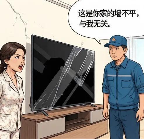 尹女士觉得不妥,要求师傅调好再走,师傅回怼:“你家的墙不平,与我无关。”