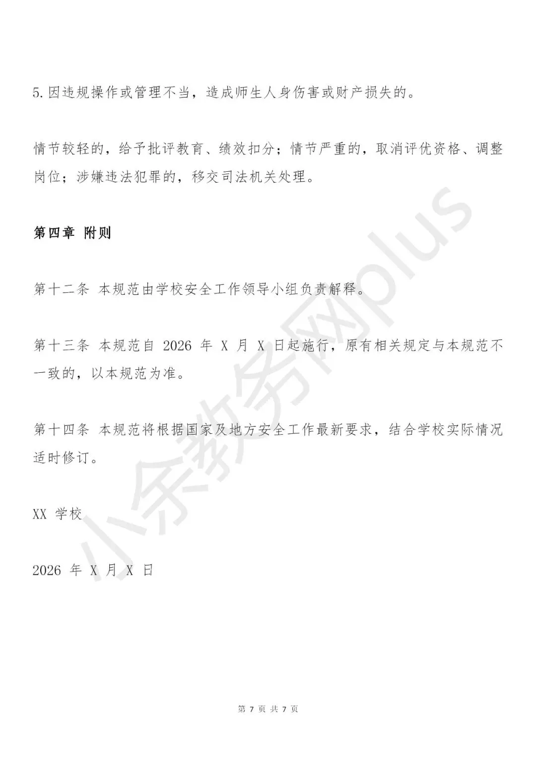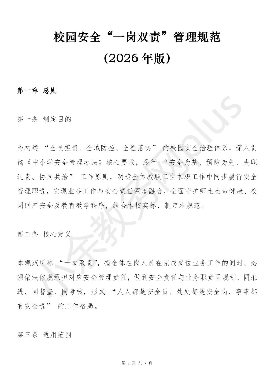 校园安全“一岗双责”管理规范模板推荐(2026 年版)校园安全“一岗双责”管理规范模板推荐(2026 年版)。「小余教务网」是一家专注教师资料、校领导资料、班主任资料、德育资料等大而全的教务资料平台。下面是这份文档资料的预览。备注:文档可编辑可修改(原始文档无水印、无马赛克)。
