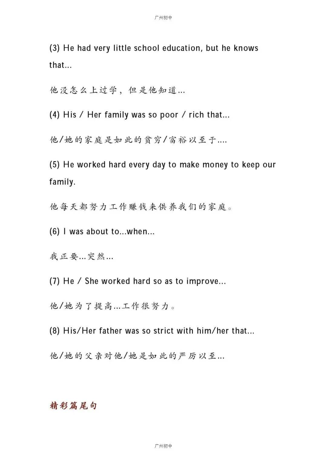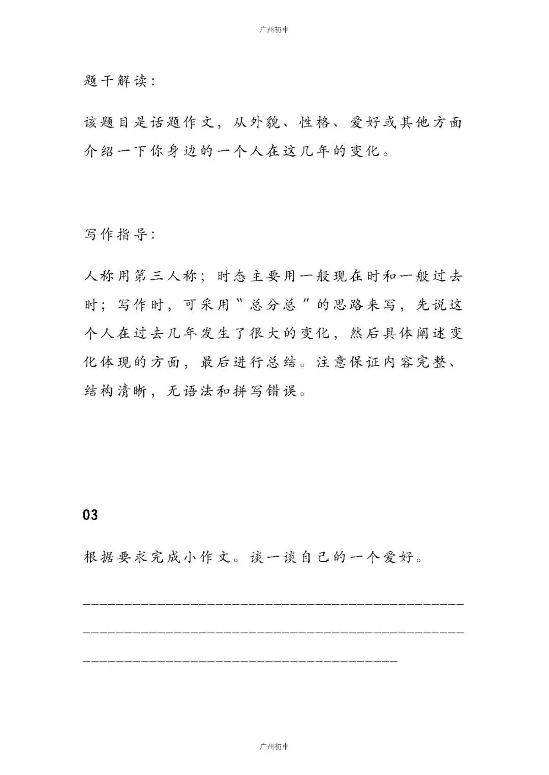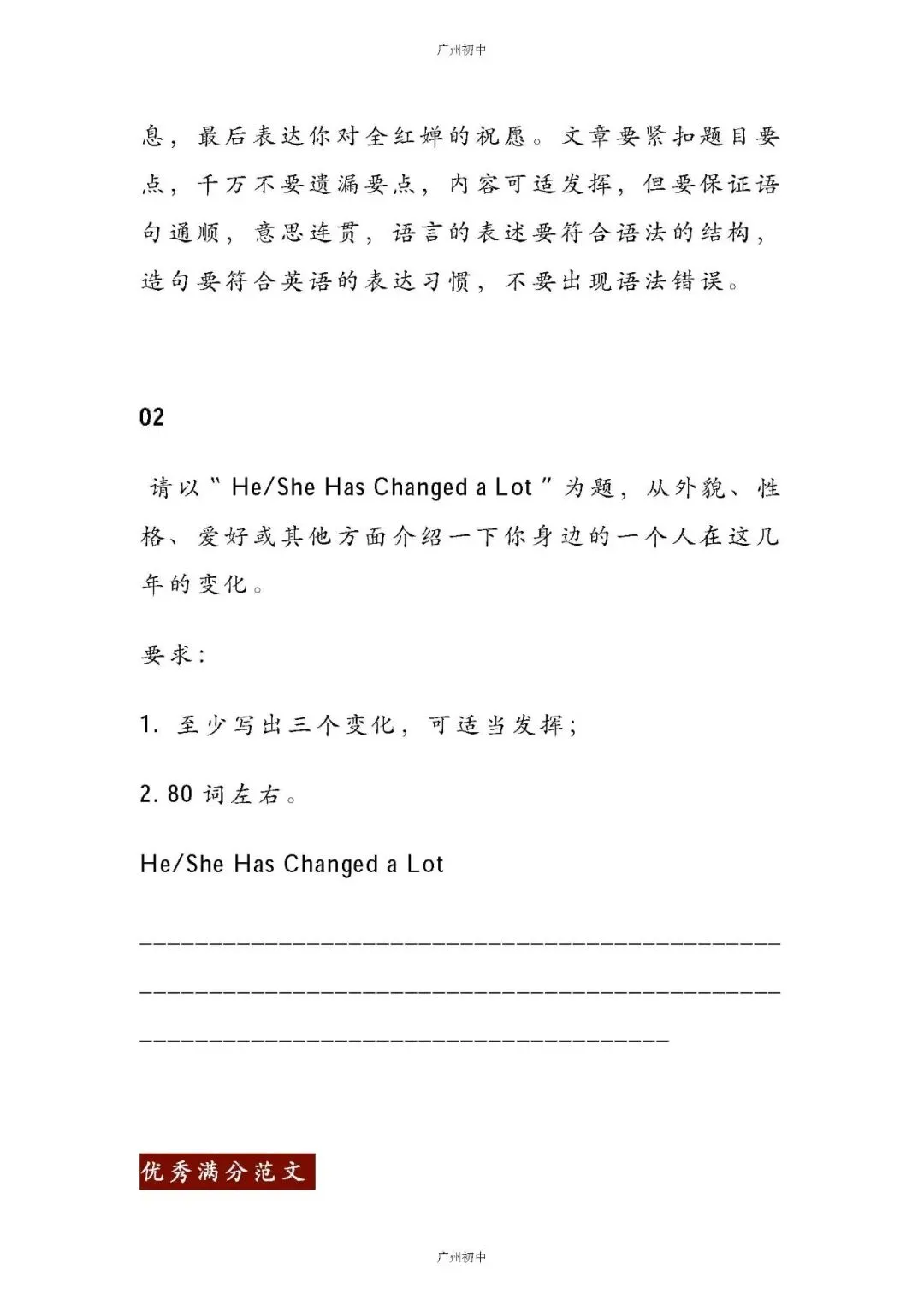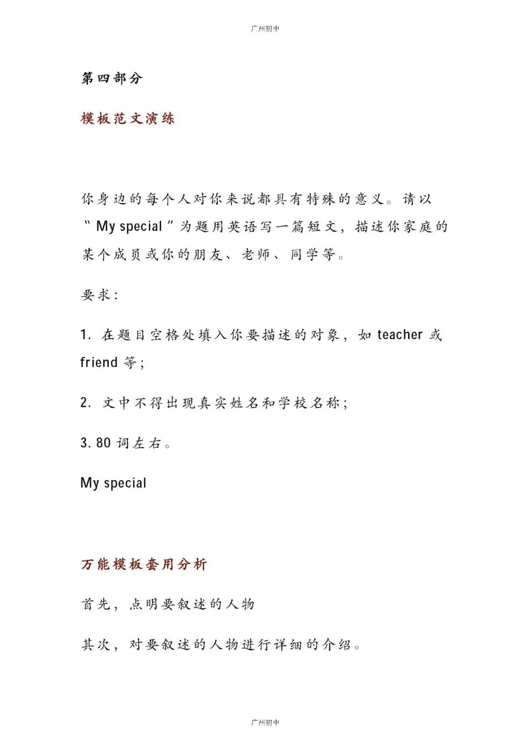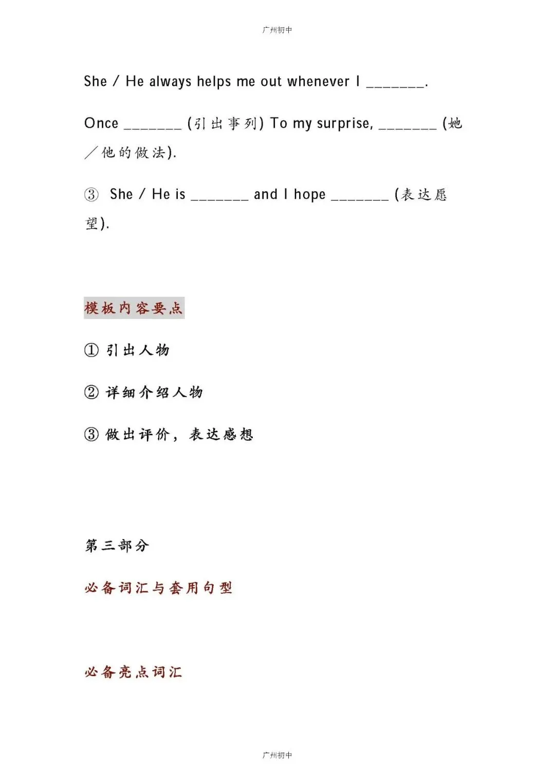 初中英语作文必备!万能黄金模板,助你轻松写出高分作文!今天小初给大家整理了:初中英语作文万能黄金模板已为大家备好电子打印版,想要领取电子打印版请拉到文末查看。 如何下载电子打印版?? 👇👇👇1、点击下方卡片关注广州初中2、点击发送消息,发送关键词 4月份 查看4月21日文件夹可获取下载注:下载如有问题,下方留言反馈-END-点这里👇关注我,记得标星哦~在公众号后台回复以下【关键词】可获取相关内容【中考试卷】下载2017-2025年广州中考试卷【一模试卷】下载2017-2025年各区一模试卷【中考改革】查看广州新中考改革内容【中考签约】查看中考签约解读【名额分配】查看名额分配政策解读【自主招生】查看自主招生政策解读【特 长 生】查看特长生政策内容点分享点收藏点点赞点在看