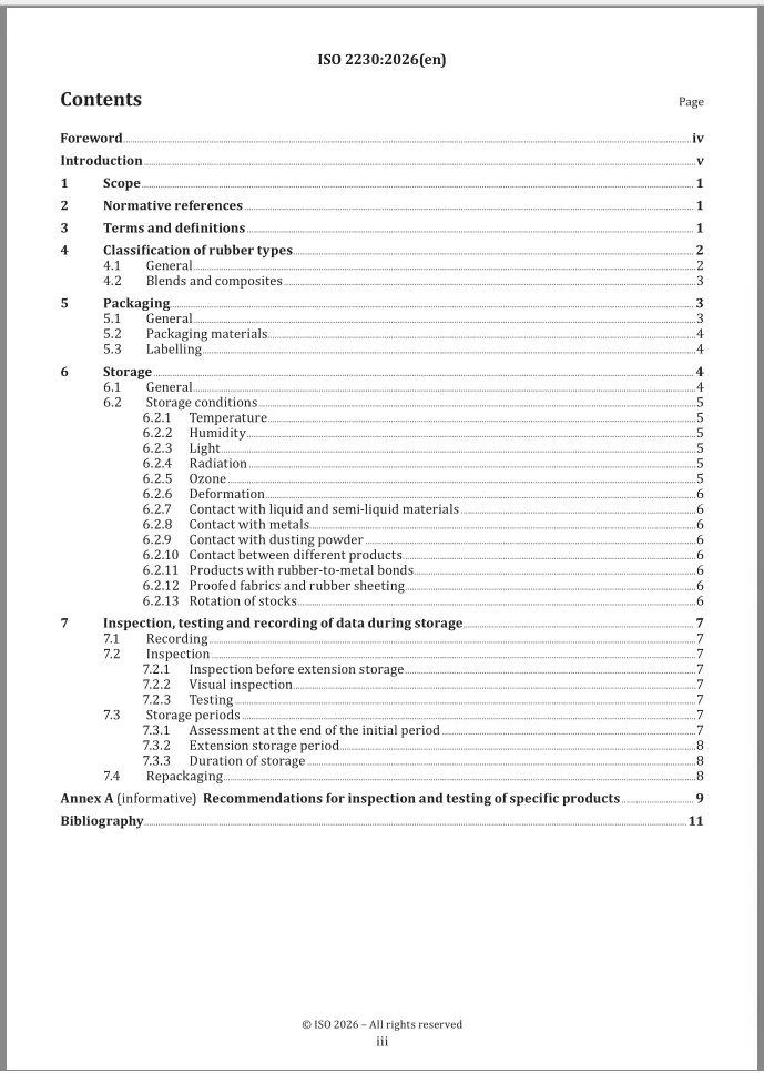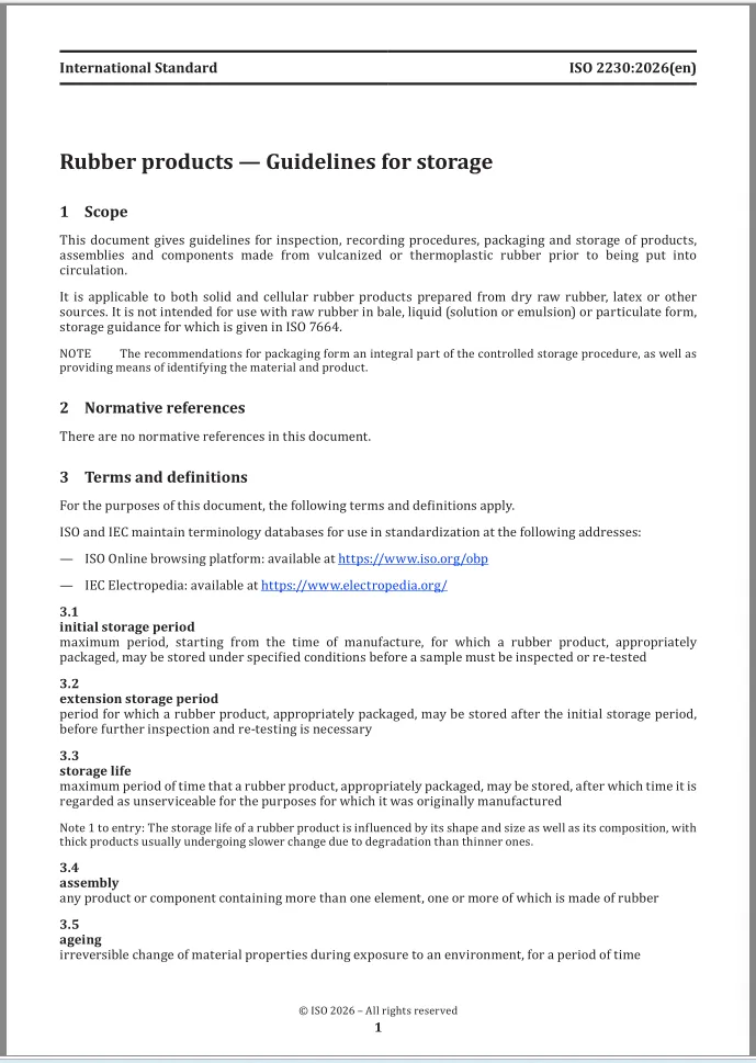 欢迎订购ISO 2230-2026【PDF原文+中文翻译版】橡胶制品 贮存指南 Rubber products - Guidelines for storage