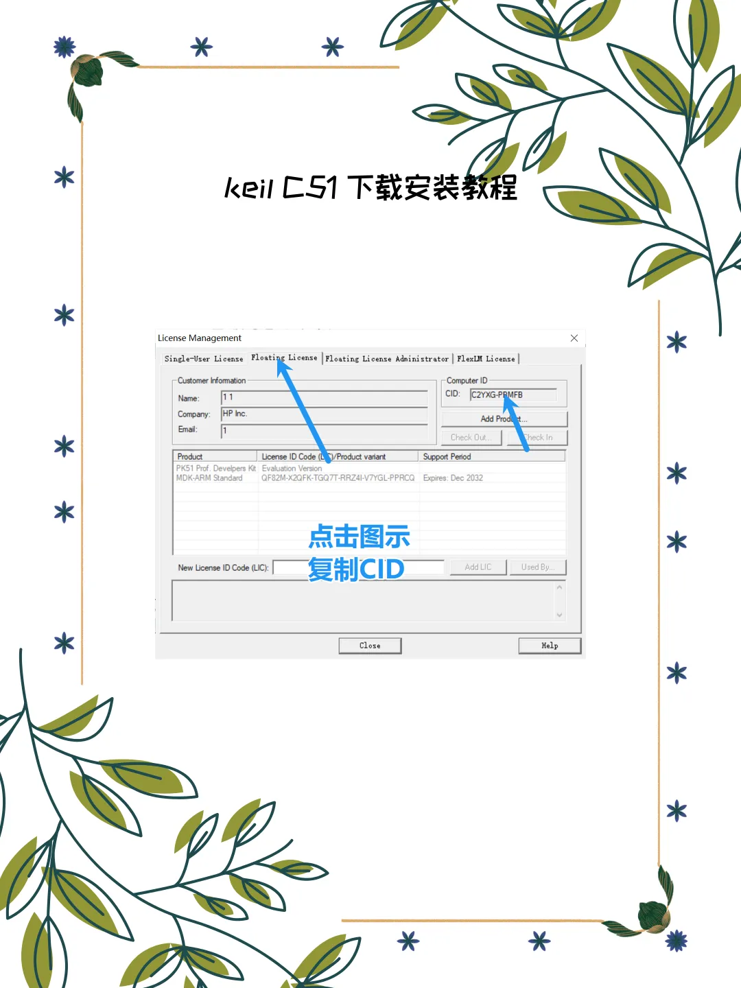 2. 获取 CID:点击菜单栏File➡License Management,复制窗口右上角的CID 码。