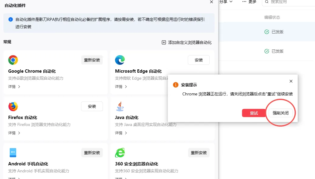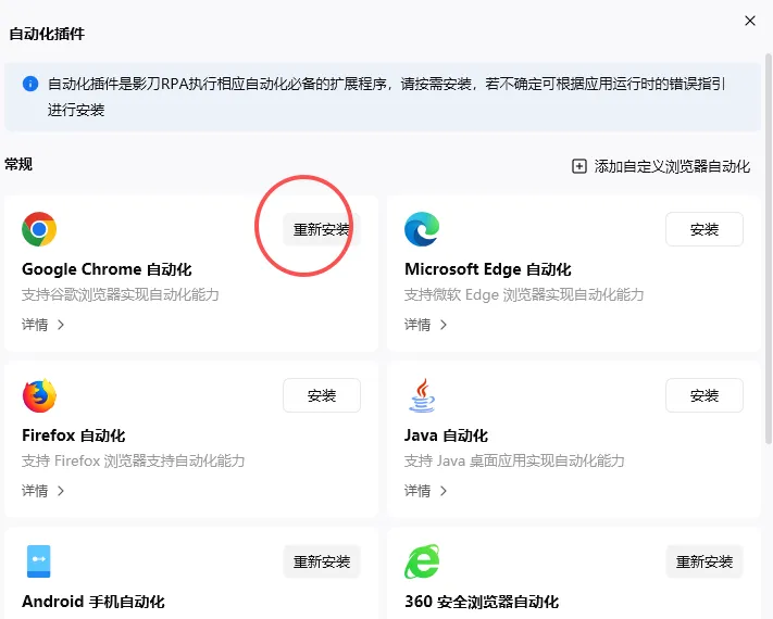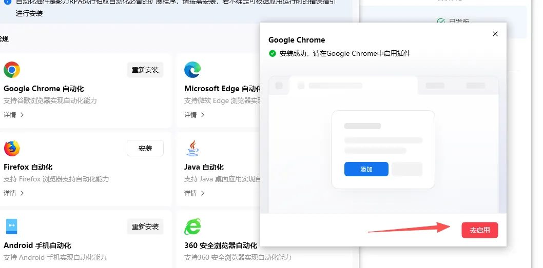 这是最关键也是最便捷的一步,通过影刀客户端可自动完成插件的配置。