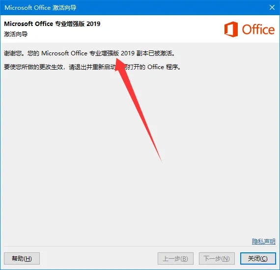 当看到如下图一致的界面,表示Office已经成功永久激活,再次重启软件即可。