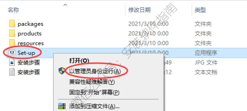 3、鼠标右击管理员身份运行 Set-up
