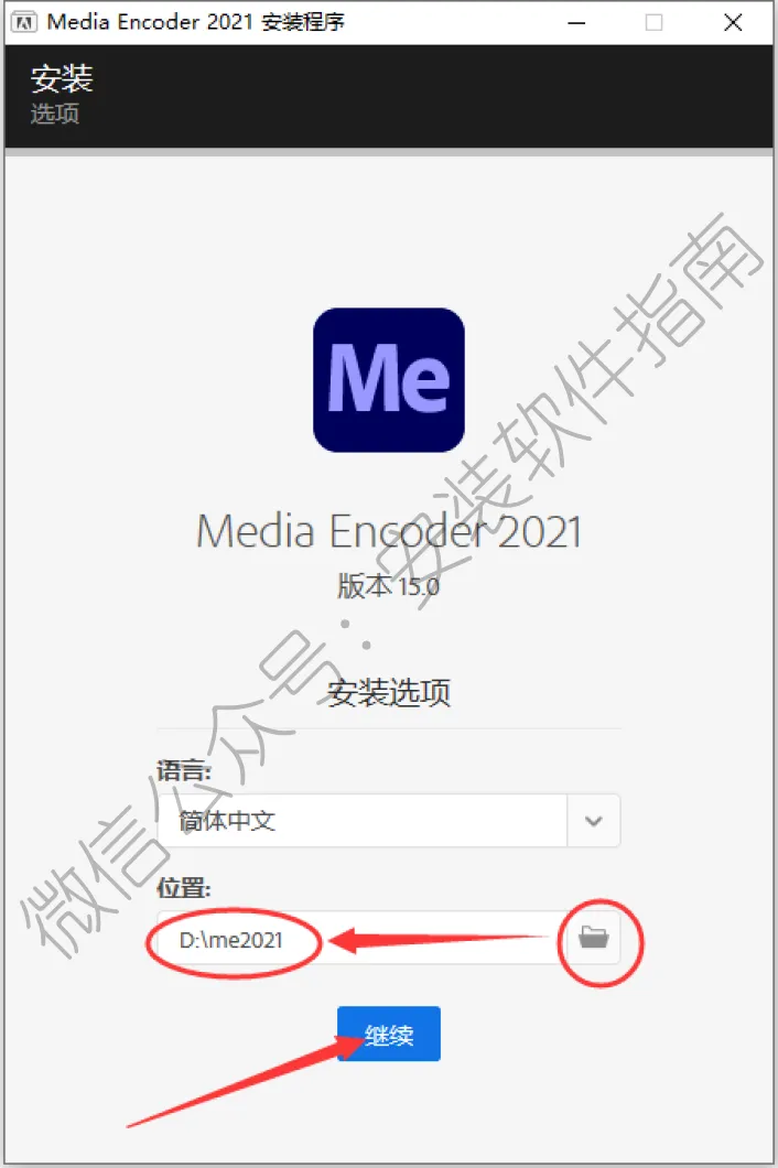 4、选择语言,选择安装位置,建议装D盘,点击继续