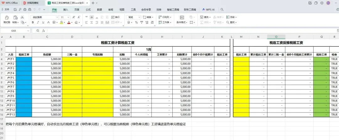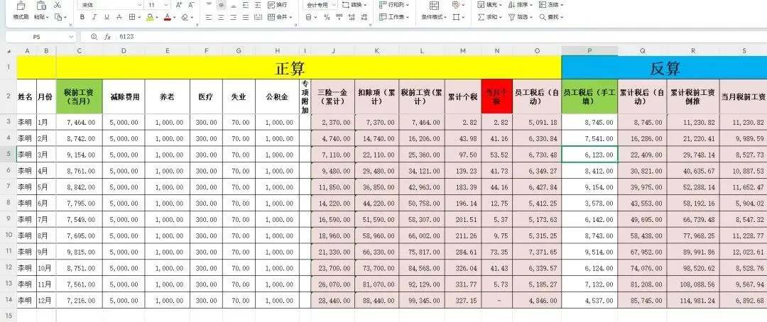 全自动Excel工资反推税前工资计算表