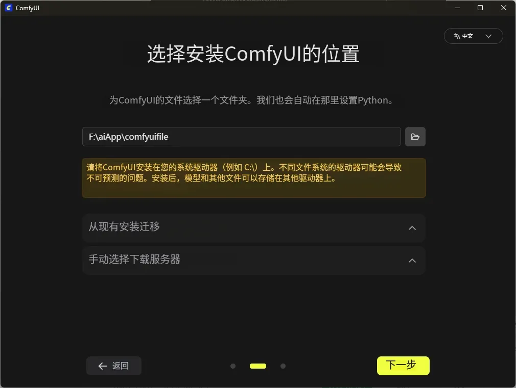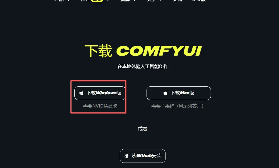下载安装包:去官网 comfy.org/zh-cn/download 下载 ComfyUI,若慢可复制链接。