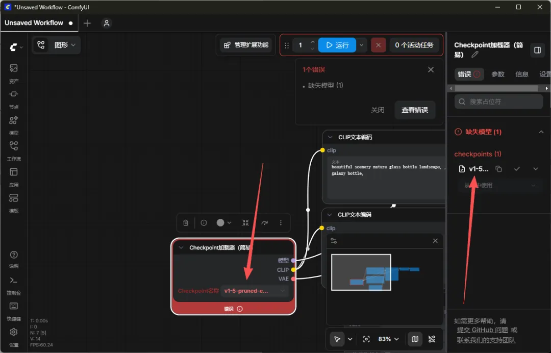 Checkpoint加载器(简易) 缺失模型(1) checkpoints (1)(这个是检查点的意思)