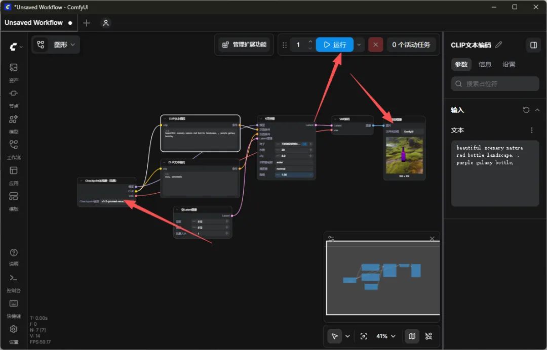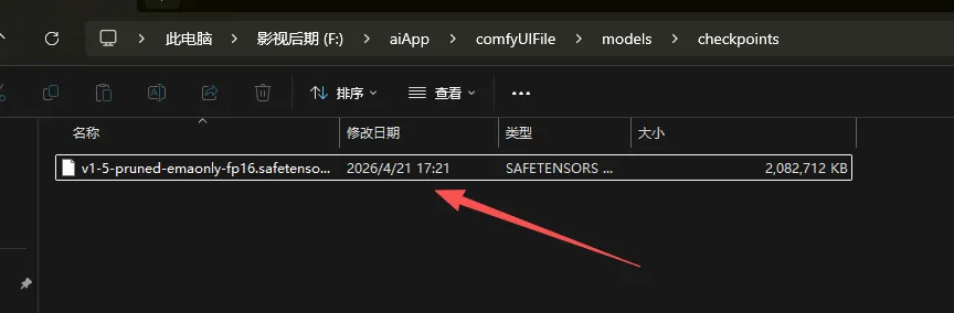 v1-5-pruned-emaonly-fp16.safetensors,有科学上网去 huggingface 下载,放入\models\checkpoints;否则用评论区网盘资源。重启 ComfyUI 即可运行。