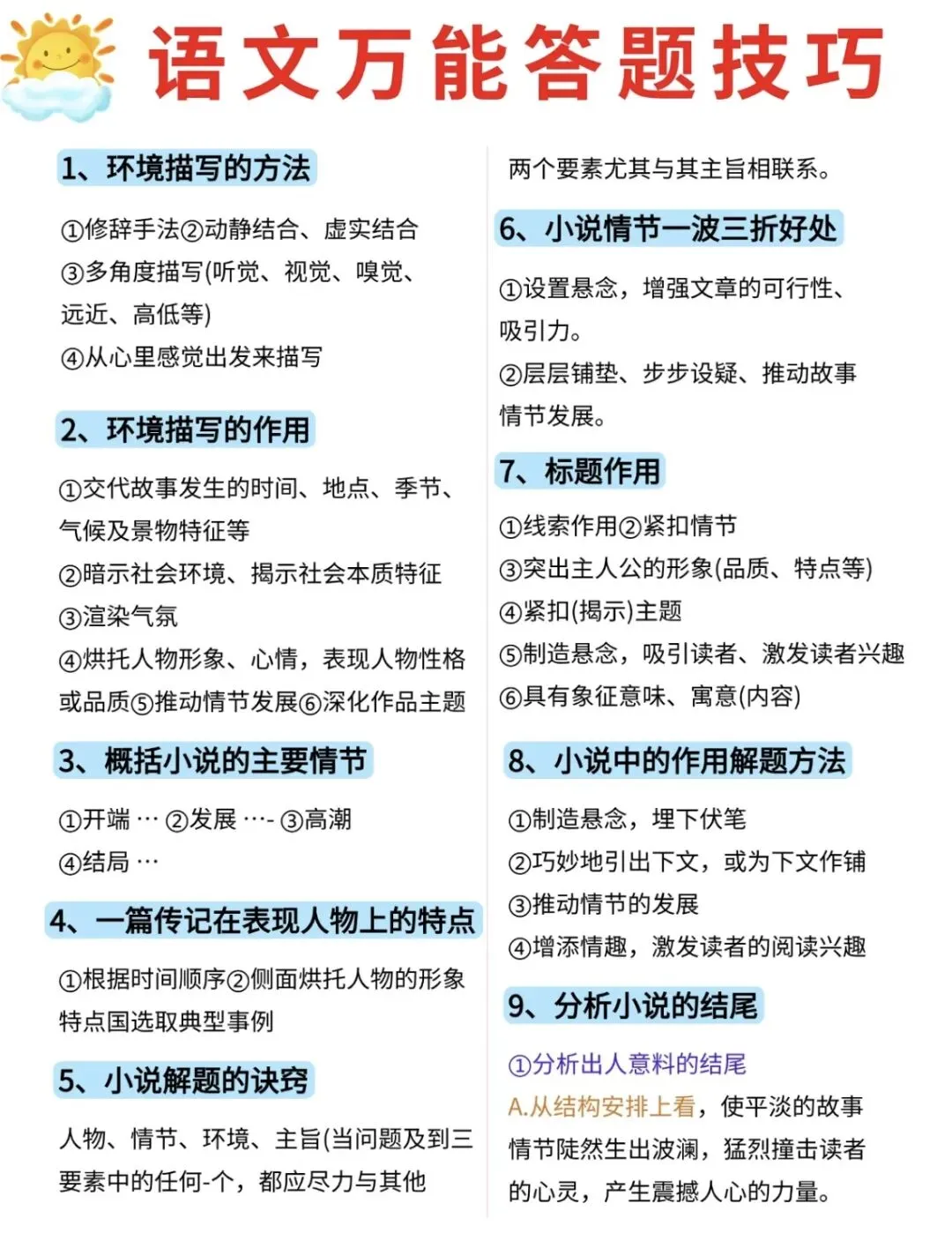情节一波三折的设计,能设置悬念、层层铺垫,让故事更有吸引力;标题、人称、结尾的作用也各有套路,掌握这些,小说题就能答得条理清晰。