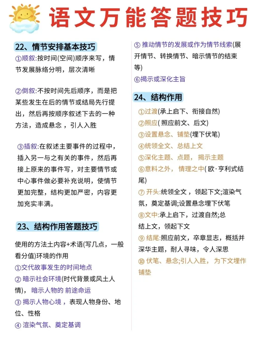 无论是过渡、照应还是设置悬念,这些固定的答题角度,能帮你快速踩中结构题的得分点。