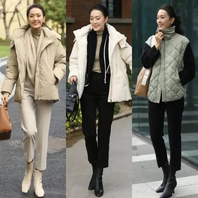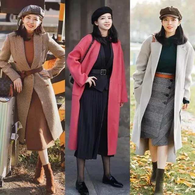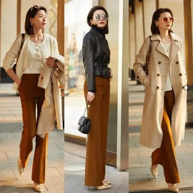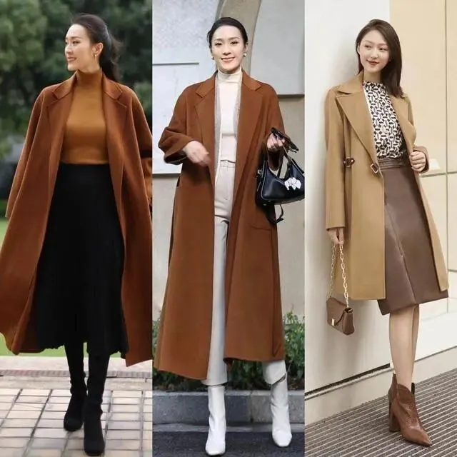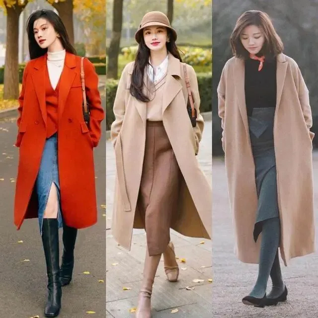 例如使用长款大衣拉长身段,然后通过抬高内搭腰线的方法提升穿搭显瘦效果。这样做不仅能突出成熟魅力,而且还可以轻松穿出气场感。