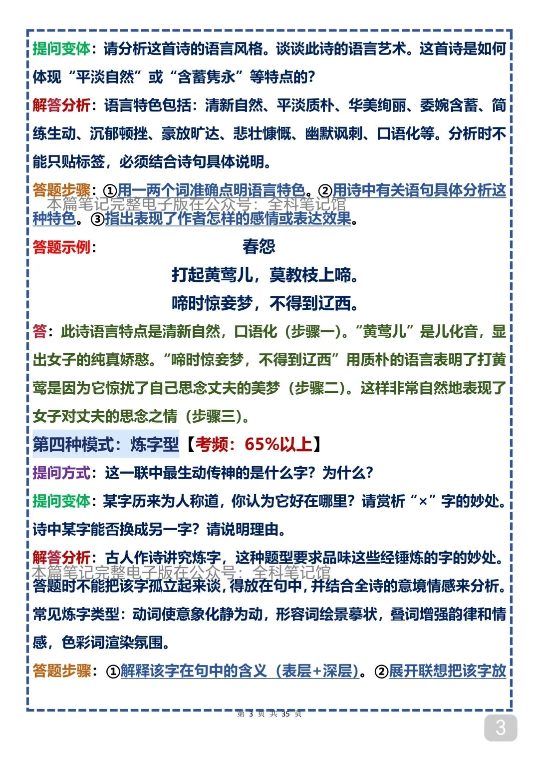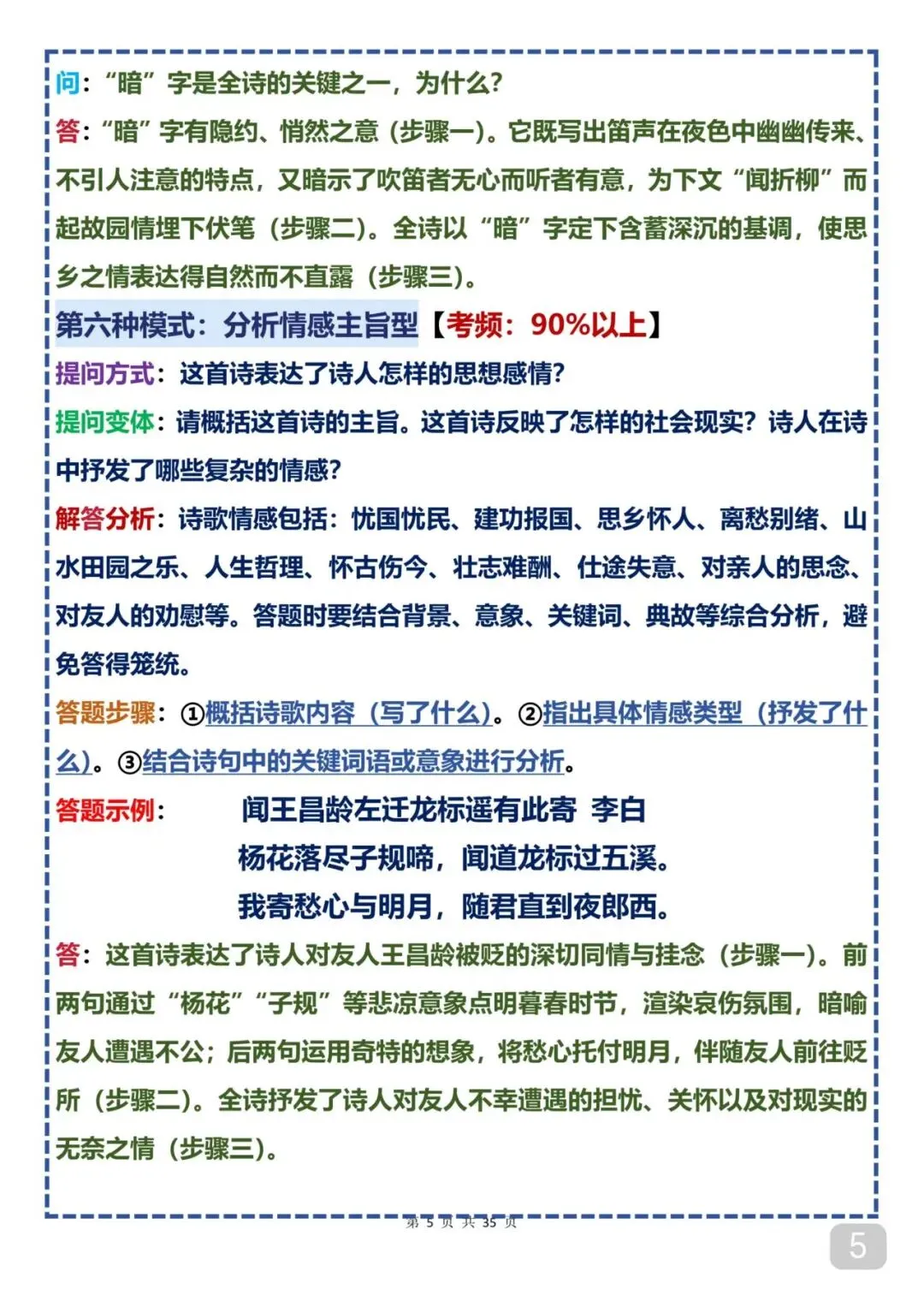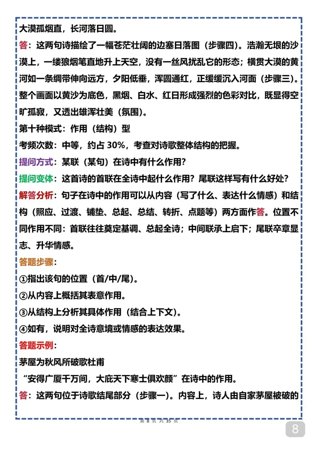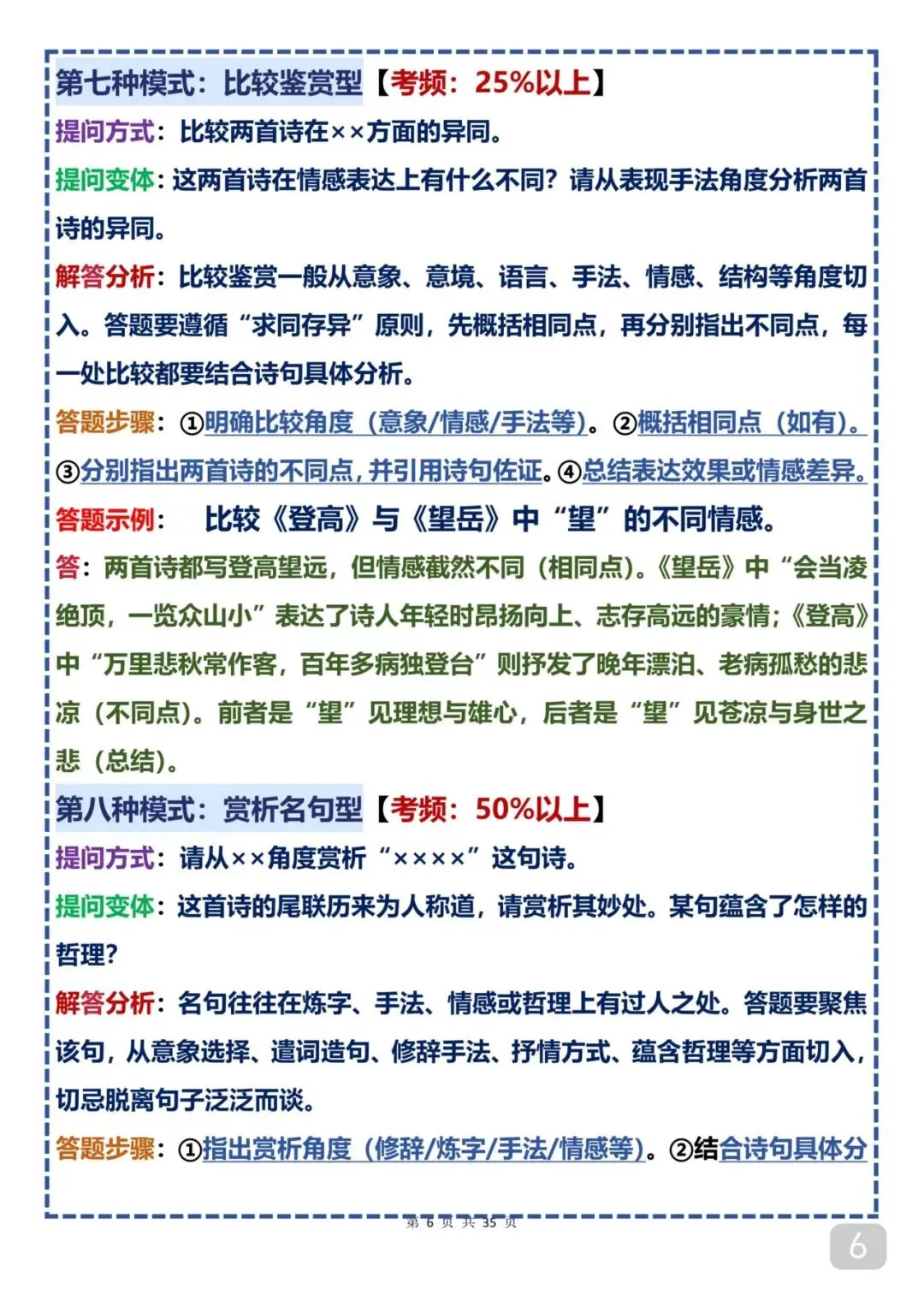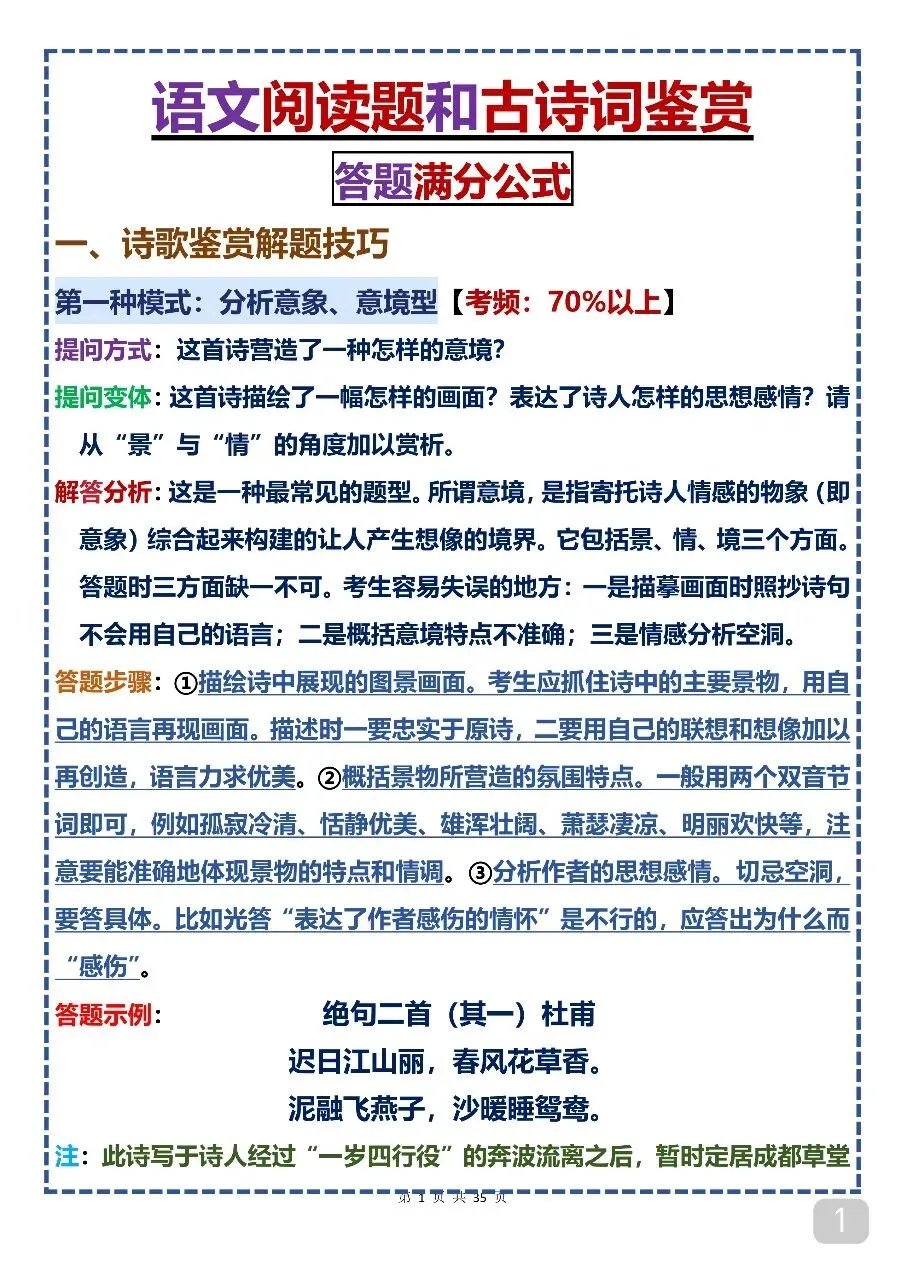 建议全文背诵:语文古诗词鉴赏万能答题模板(PDF打印版)