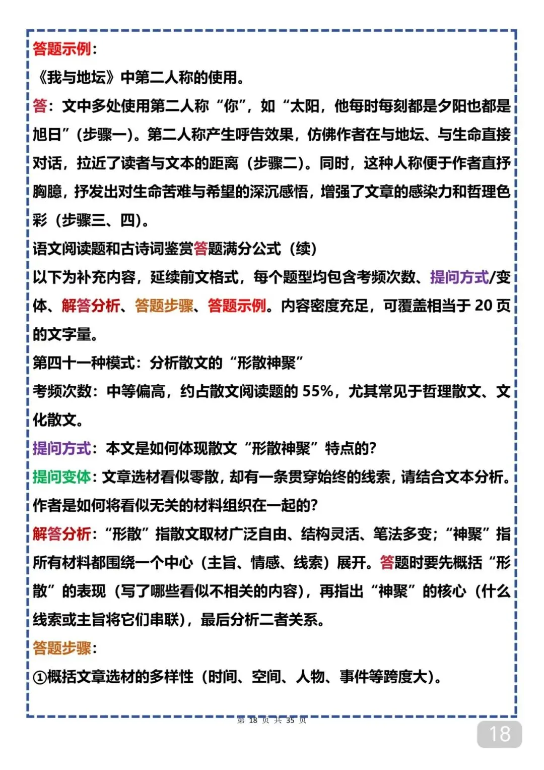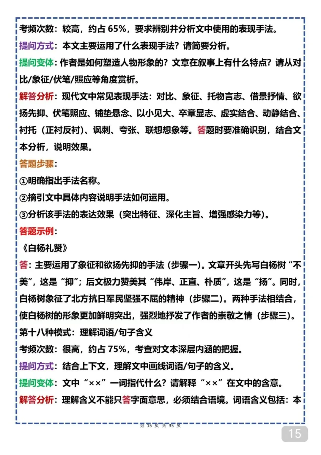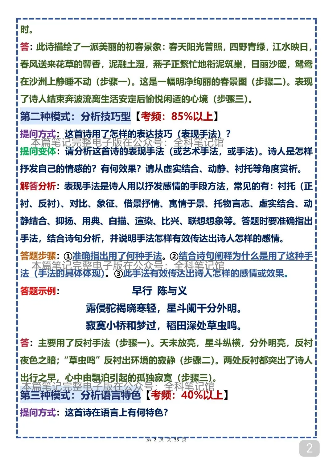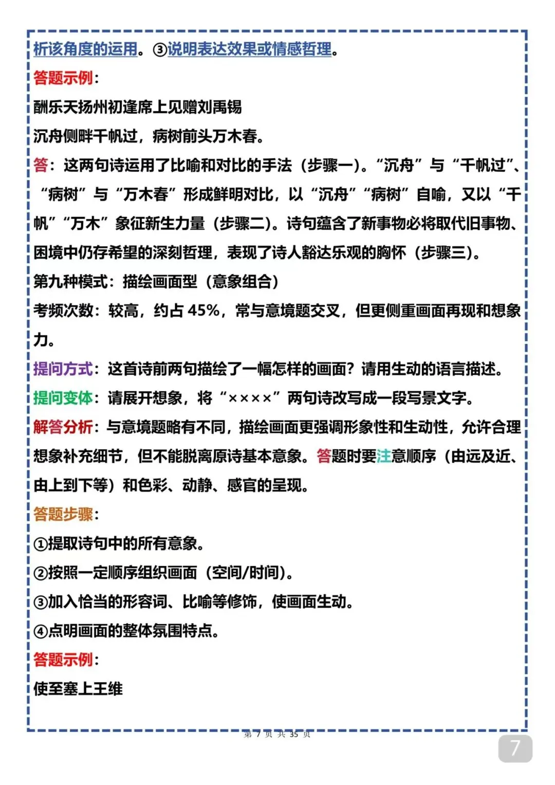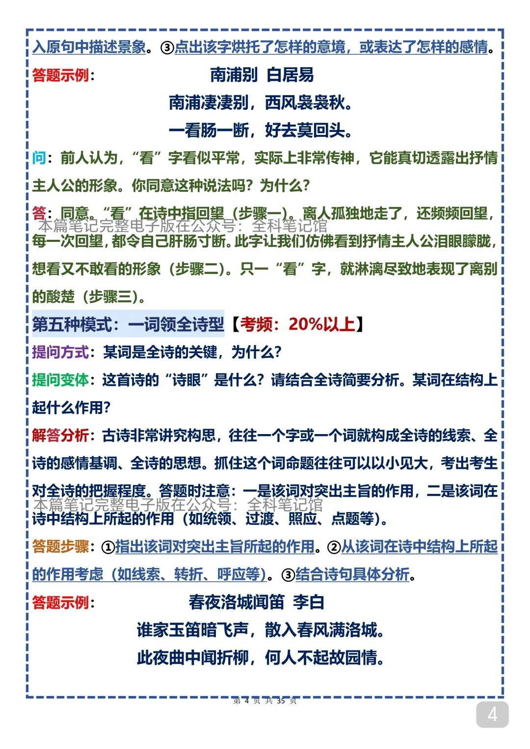 建议全文背诵:语文古诗词鉴赏万能答题模板(PDF打印版)