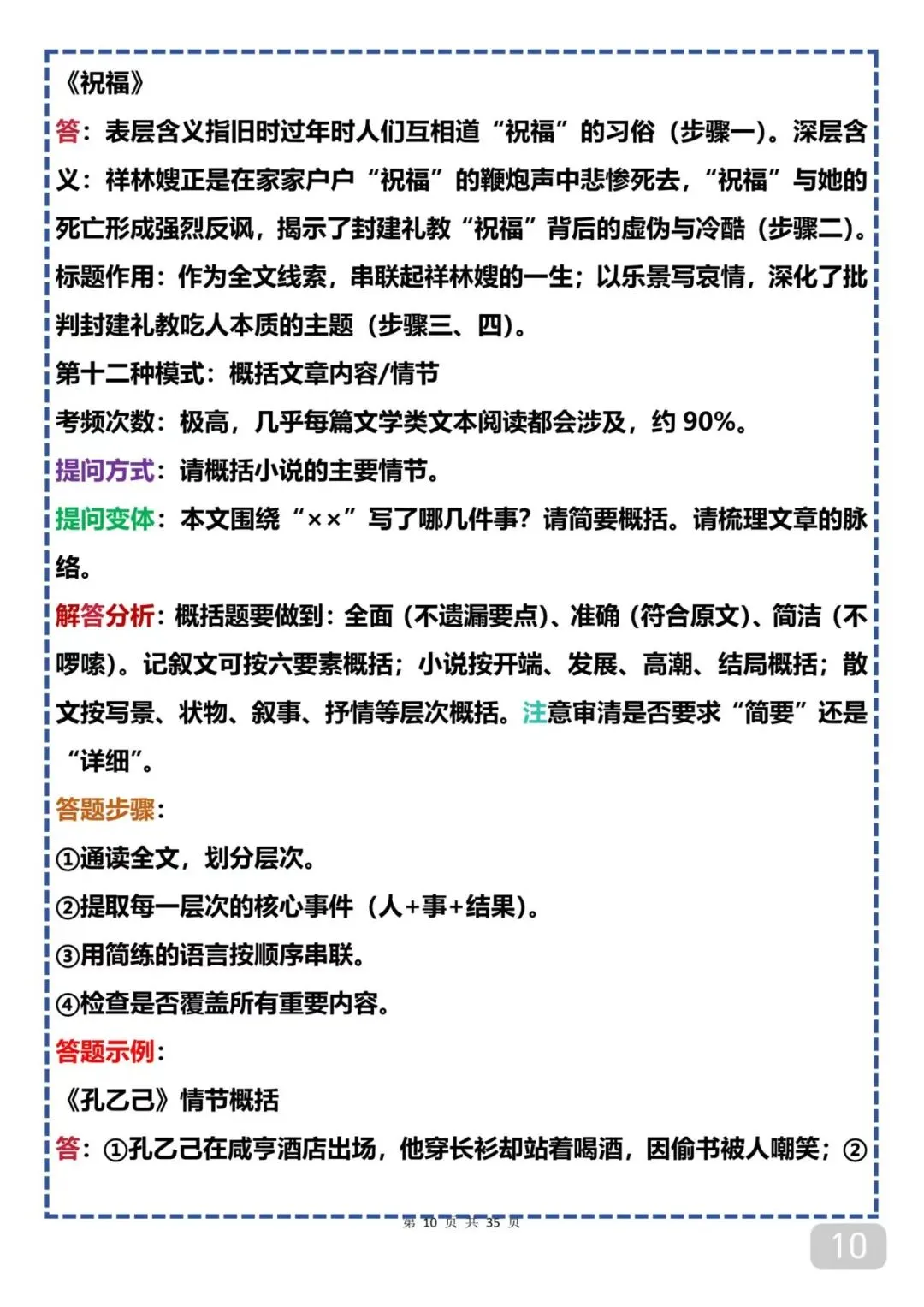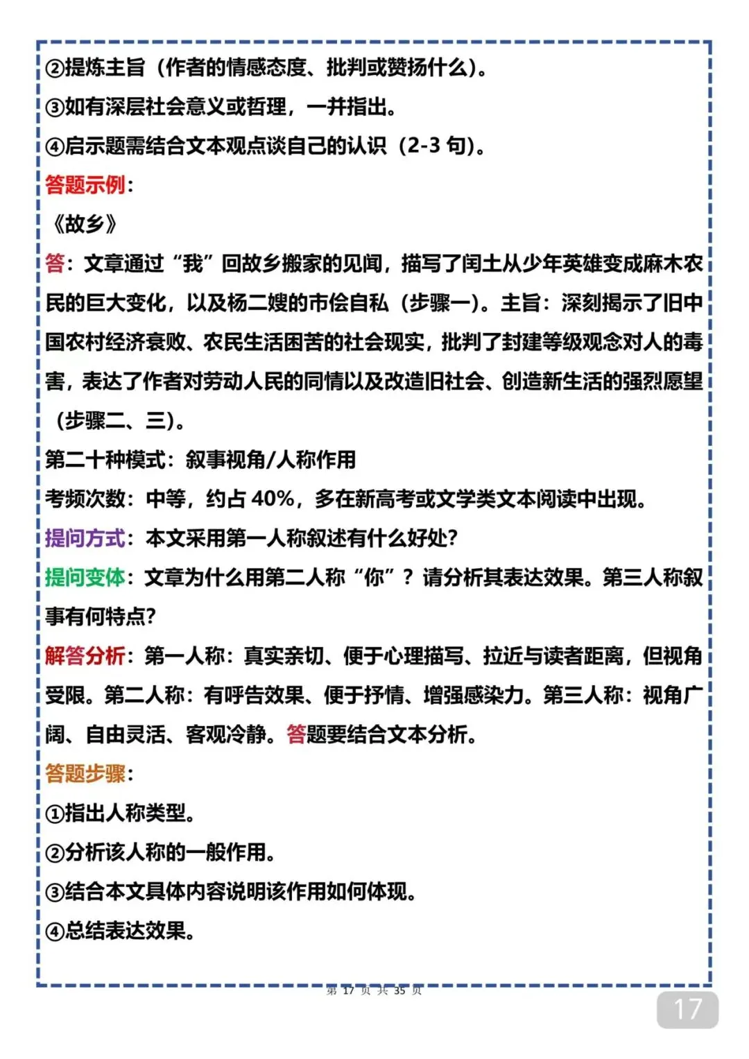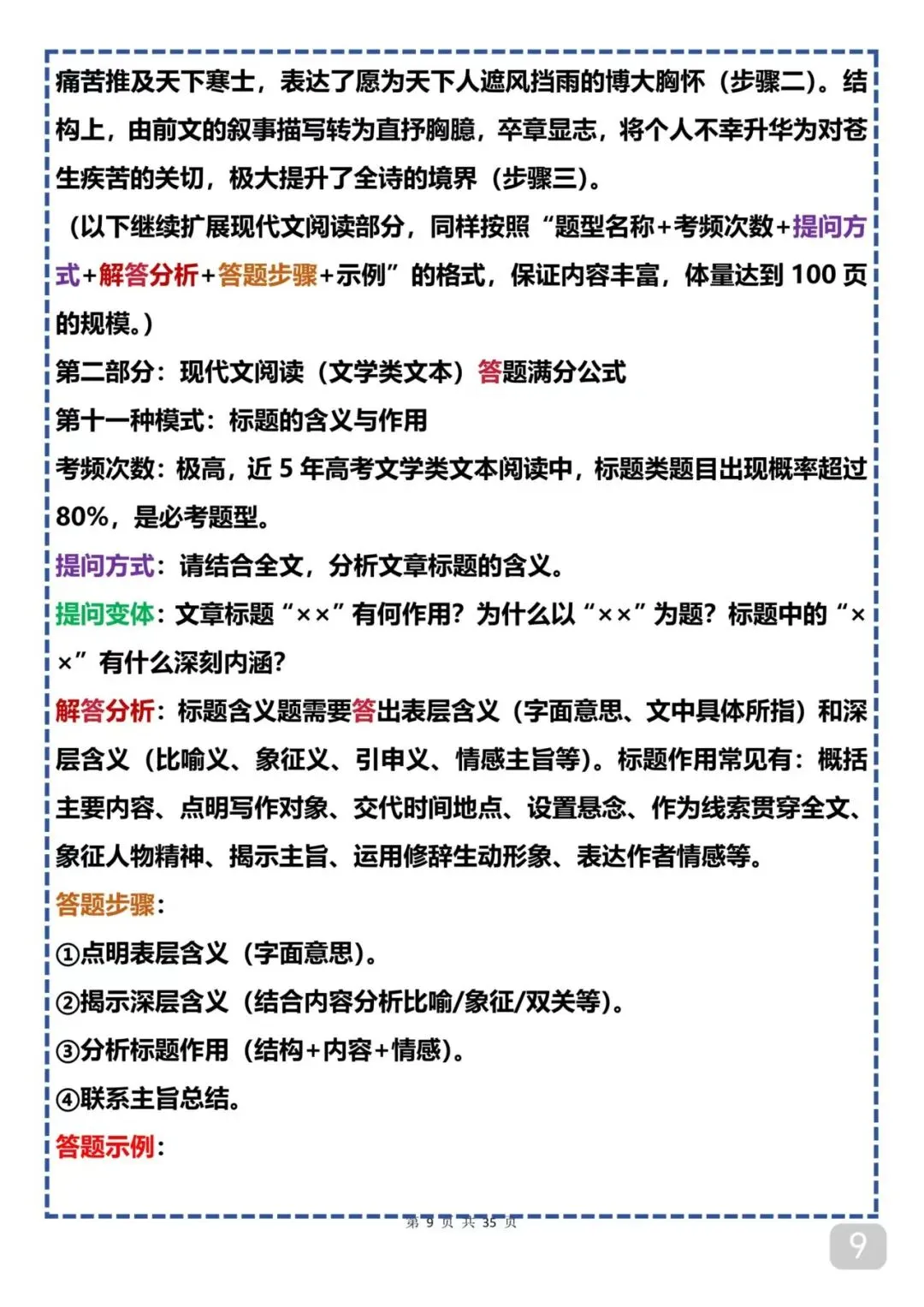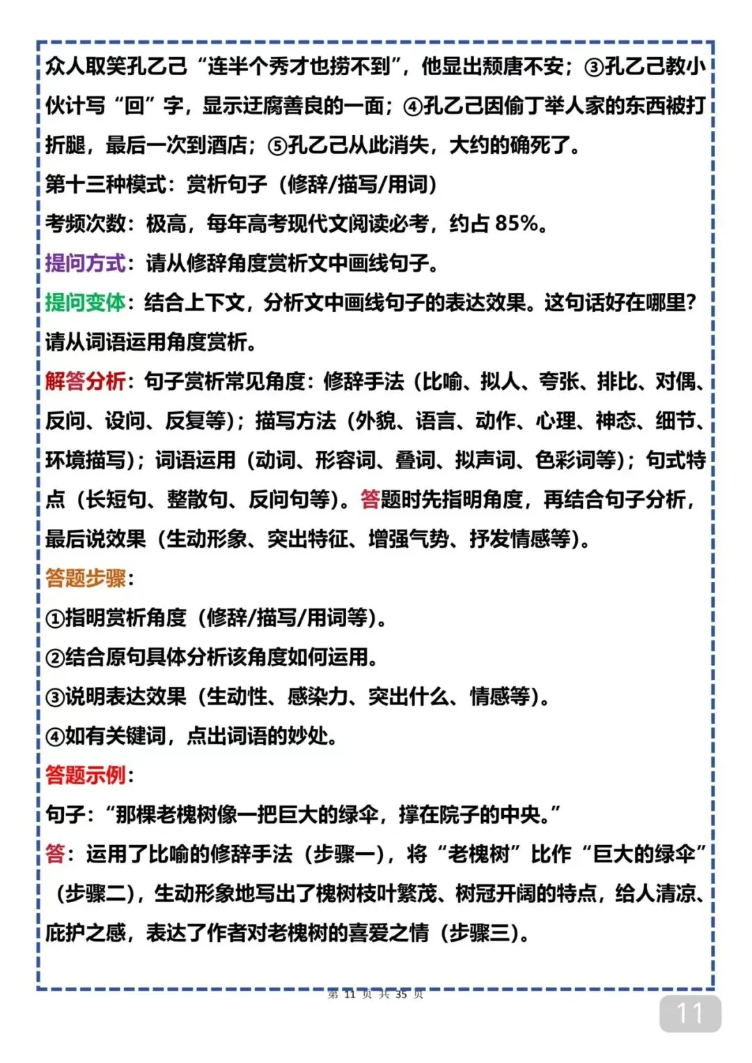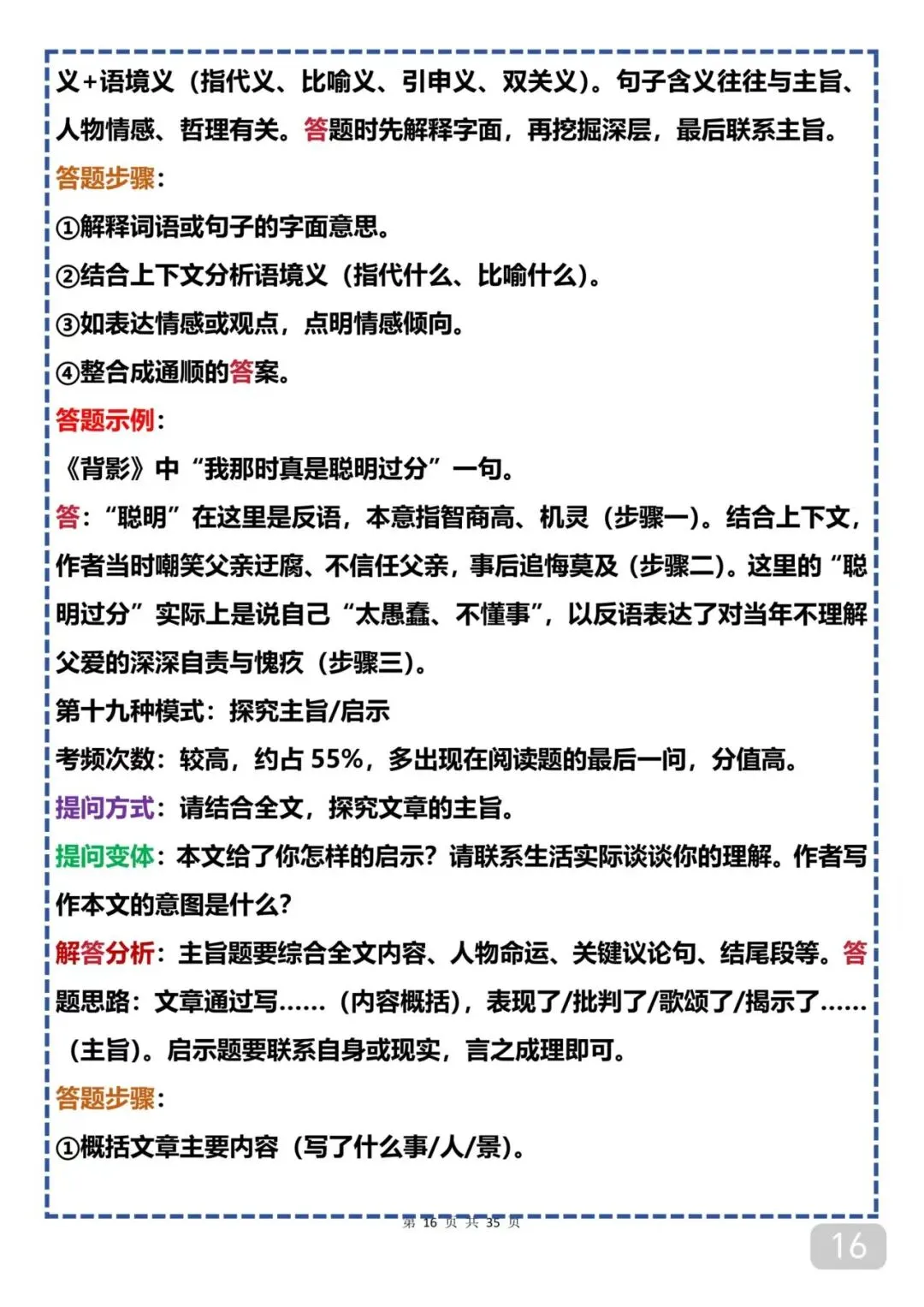 建议全文背诵:语文古诗词鉴赏万能答题模板(PDF打印版)