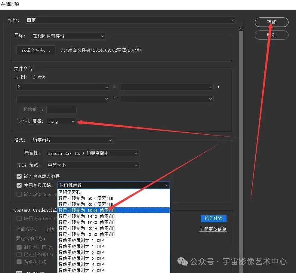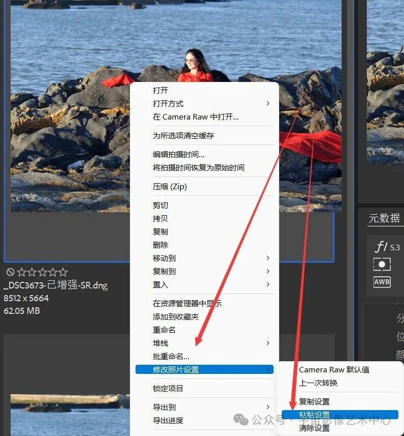 ACR18.3修图技巧三十二:低配置的电脑如何轻松处理高像素的图像对于一些老旧电脑,由于配置比较低,在Camera Raw处理RAW格式高像素的图像时,不但运行速度非常慢,而且卡顿。如何在Camera Raw轻松处理高像素的图像呢?一、在Camera Raw打开图像在Camera Raw打开RAW格式图像,像素为8215×5664,大小62.05MB:二、把图像转换成RAW格式的小图像在Camera Raw,点击“转换并储存图像”:三、在弹出的“存储选项”对话框,选择“文件扩展名dng”,“使用有损压缩,将尺寸限制为1024像素/面”,点击“存储”四、在Camera Raw,点击“完成”五、存储后的图像,像素和文件都缩小了,像素为1024×681,大小670KB六、回到Adobe Bridge,在Camera Raw打开缩小了dng小图,进行调整就很流畅了,处理完后点击“完成”七、回到Adobe Bridge,右键点击处理过的dng小图,选择“修改照片设置”→“复制设置”八、回到Adobe Bridge,右键点击原片,“粘贴设置”九、选择“选定所有项目”,点击“确定”效果MANUFACTURE点击以下标题,阅读往期内容:手机版《剪映》教程ACR教程手机摄影Adobe Photoshop 教程Ps插件教程Bridge教程ps小技巧电脑知识闪光灯教程摄影技巧摄影后期技巧ACR更新详解摄影基础知识摄影与后期摄影杂谈摄影问答聚会影像的魅力闪光灯教程ACR18.3修图技巧