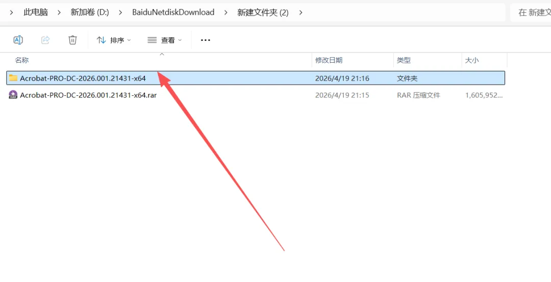 2.双击进入解压后的【Acrobat-PRO-DC-2026.001.21431-x64】文件夹。