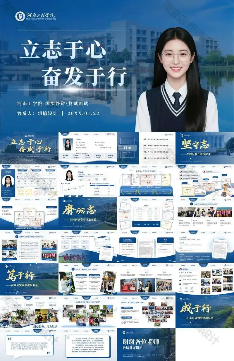河南工学院毕业答辩PPT模板汇报幻灯片课件总结大学生作品集