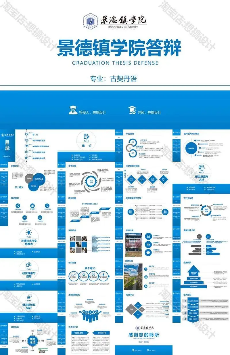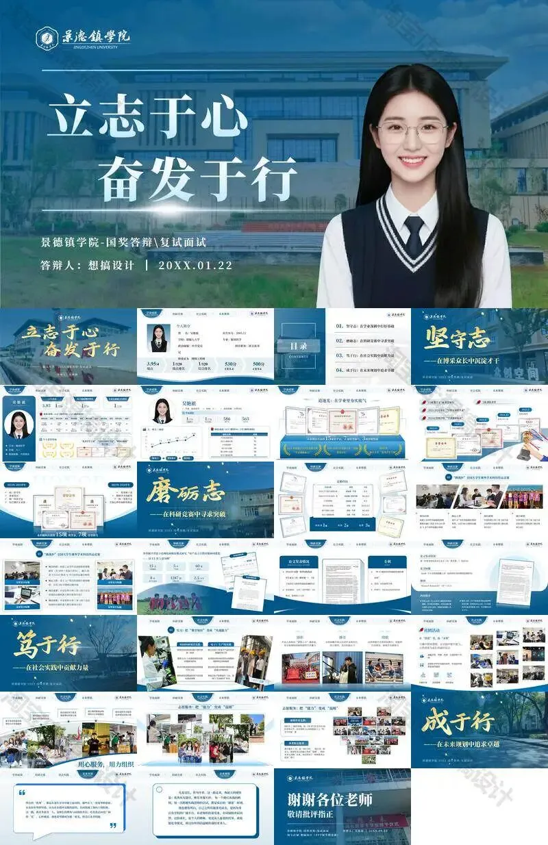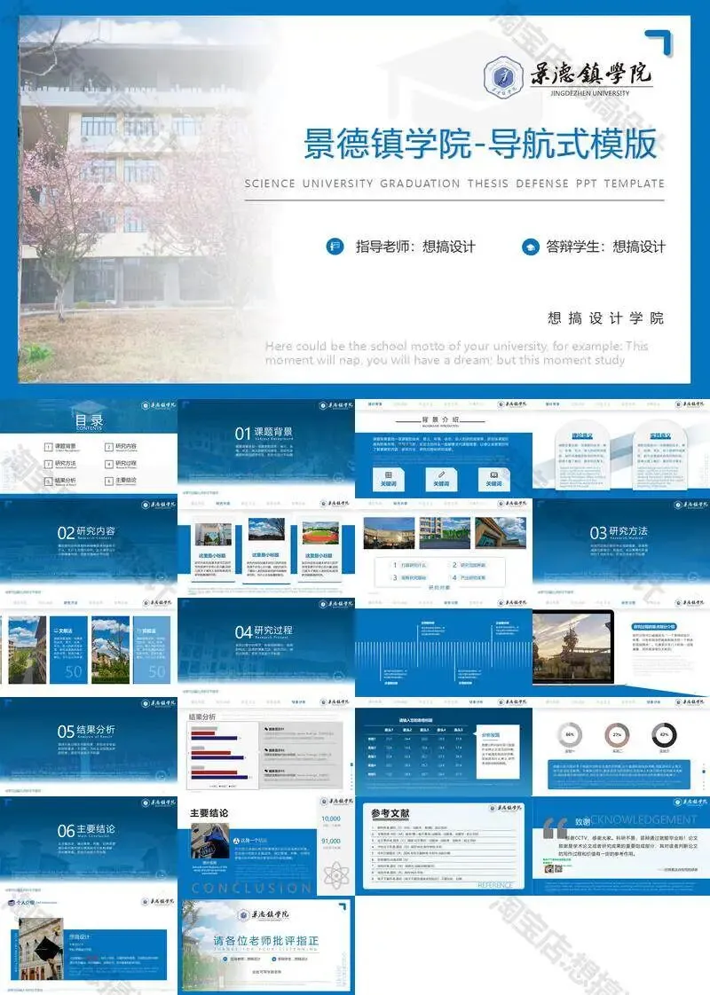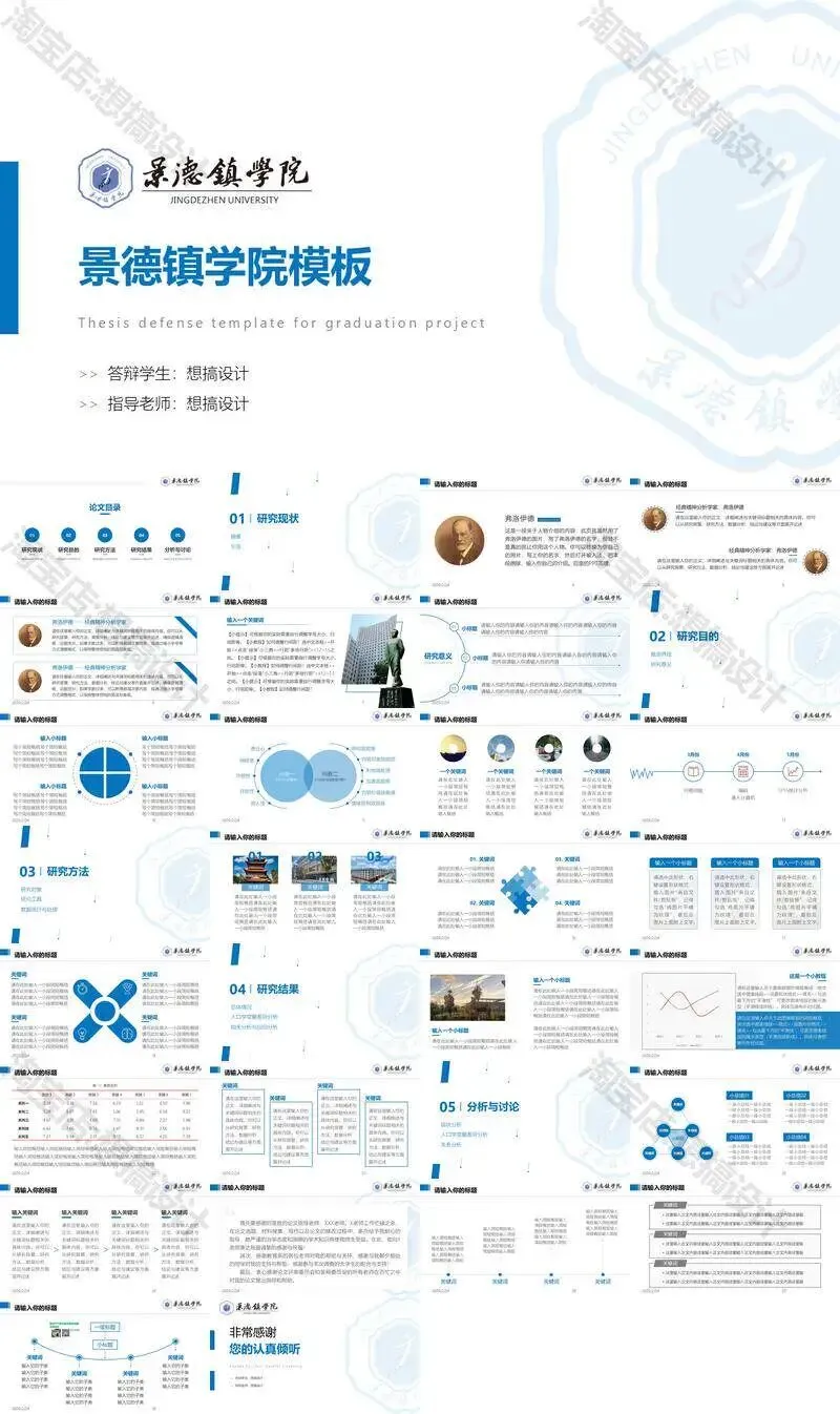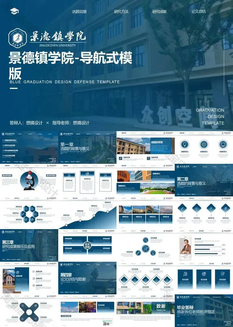 景德镇学院毕业答辩PPT模板汇报幻灯片课件总结大学生作品集